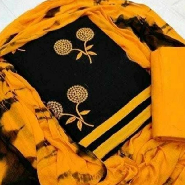 Charvi Voguish Salwar Suits & Dress Materials Top Fabric: Cotton + Top Length: 2 Meters Bottom Fabric: Cotton + Bottom Length: 2 Meters Dupatta Fabric: Chiffon + Dupatta Length: 2.25 Meters Lining Fabric: No Lining Type: Un Stitched Pattern: Embroidered Multipack: Single Country of Origin: India