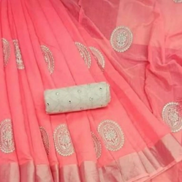 Trendy Women's Sarees Saree Fabric: Silk Blouse: Separate Blouse Piece Blouse Fabric: Banarasi Silk Pattern: Embroidered Blouse Pattern: Embroidered Multipack: Single Sizes: Free Size (Saree Length Size: 5.5 m Blouse Length Size: 0.8 m) Country of Origin: India
