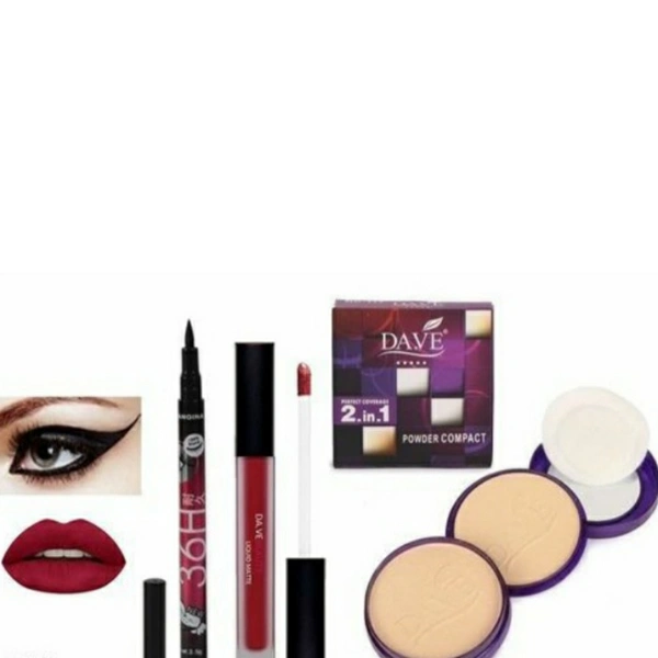 Product Name: Dave Perfect Coverage 2 IN 1 Compact Powder & Dave Matte Liquid Lipstick With Yanqina 36H Black Pen Eyeliner