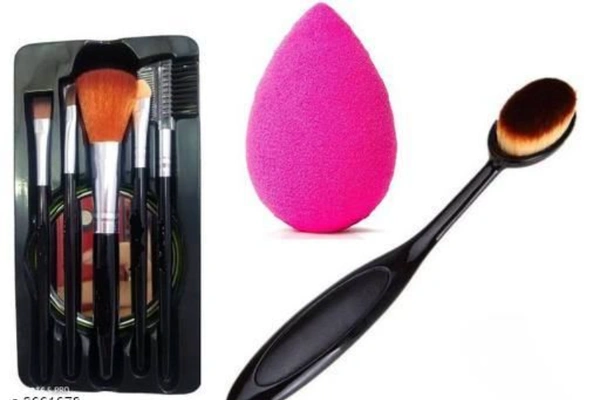 Product Name : 5_Pcs_Mirrir_Brush_Set_with_Oval_Brush_and_Puff Product Type : Brush Set & Sponge Package Contains : It Has 1 Pack Of Makeup Brush (Set Of 5) & 1 Pack Of Sponge & 1 Pack Of Oval Brush