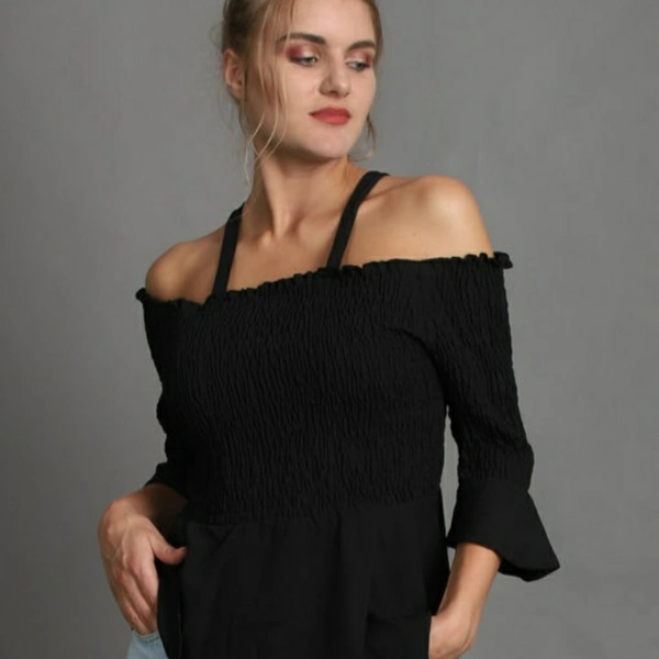 Women's Solid Black Crepe Top