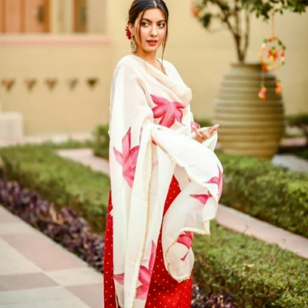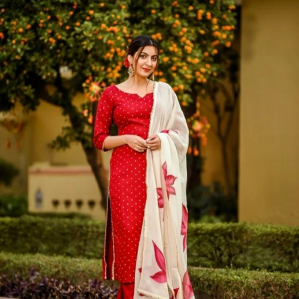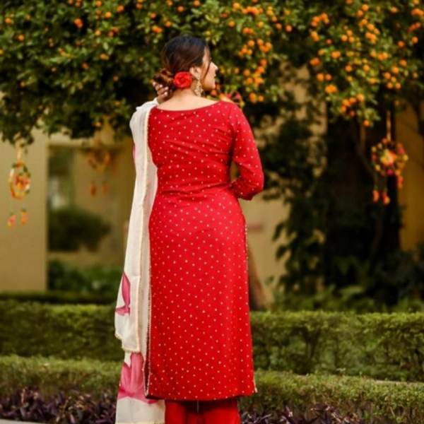 GoSriki Red Color Rayon Kurti With Plazzo and Dupatta Set (Hasley_Red_M)