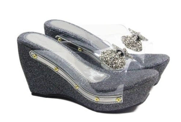 Category : Women heelsColor : GreyStyle : Wedges HeelHeel : PVC HeelMaterial : SyntheticUpper Material : Synthetic Sheesha FoamSole : PVCMade in : India