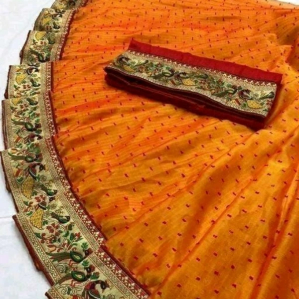 Attractive Silk Saree Saree Fabric: Silk Blouse: Running Blouse Blouse Fabric: Cotton Silk Pattern: Embroidered Multipack: Single Sizes: Free Size (Saree Length Size: 5.5 m Blouse Length Size: 0.8 m) Country of Origin: India