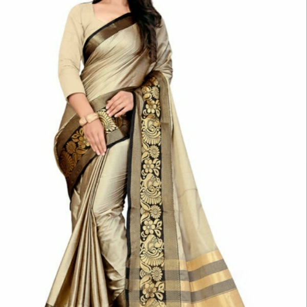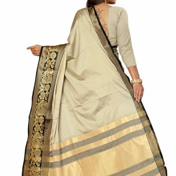 Aura Cotton Saree With Un-stitched Blouse Saree Fabric: Banarasi Silk Blouse: Running Blouse Blouse Fabric: Art Silk Pattern: Zari Woven Blouse Pattern: Jacquard Multipack: Single Sizes: Free Size (Saree Length Size: 5.5 m, Blouse Length Size: 0.8 m) Country of Origin: INDIA