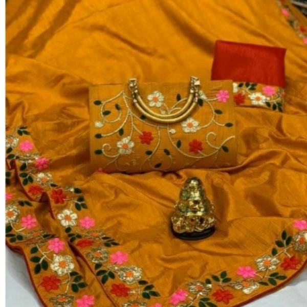 Bhavina Women Dola Silk Saree with full Embroidery handbag Saree Fabric: Chanderi Cotton Blouse: Separate Blouse Piece Blouse Fabric: Banarasi Silk Pattern: Embroidered Multipack: Single Country of Origin: India