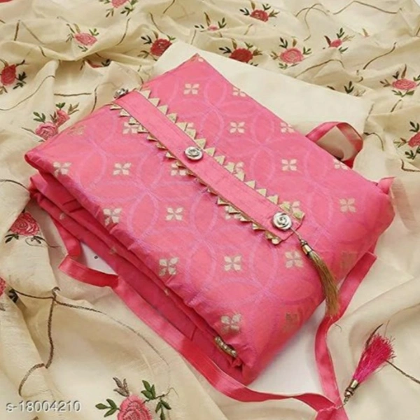 Divaastha Chanderi Pink Woven Kurta & Churidar Material ( VAR1010PINK ) Top Fabric: Chanderi Silk + Top Length: 1.8 Meters Bottom Fabric: Shantoon + Bottom Length: 2 Meters Dupatta Fabric: Chanderi Silk + Dupatta Length: 2 Meters Lining Fabric: Shantoon Type: Un Stitched Pattern: Woven Design Multipack: Single Country of Origin: India