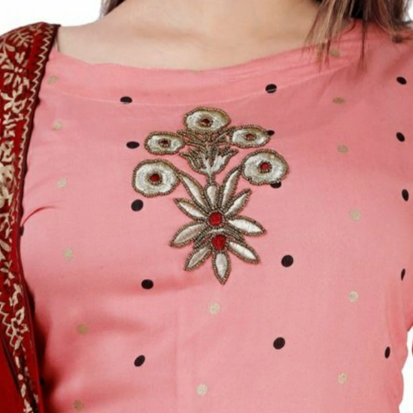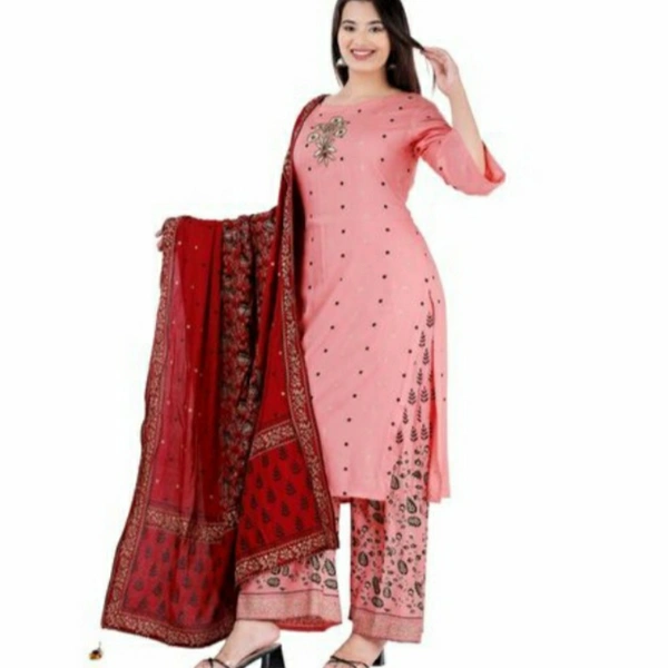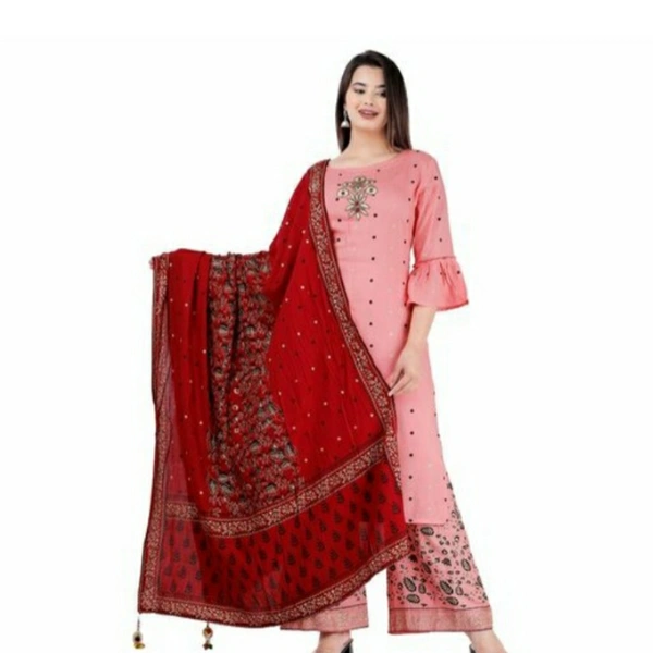 Beautiful attractive Rayon Gajari Moti Embroidery Kurti Palazzo With Dupatta set For Women's And Girl's
