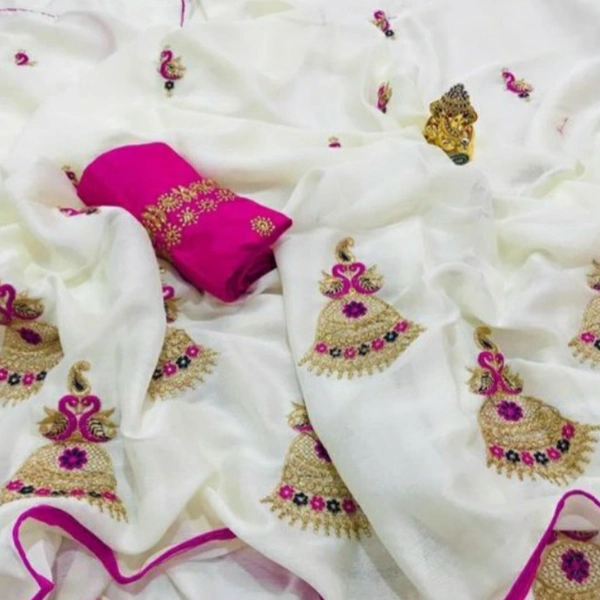 GOPI JUMKHA BEAUTIFUL TRNDY SAREE Saree Fabric: Georgette Blouse: Separate Blouse Piece Blouse Fabric: Dupion Silk Pattern: Embroidered Blouse Pattern: Embroidered Multipack: Single Sizes: Free Size (Saree Length Size: 5.5 m, Blouse Length Size: 0.8 m) Country of Origin: India