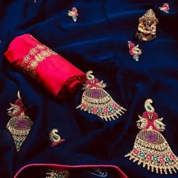 GOPI JUMKHA BEAUTIFUL TRNDY SAREE Saree Fabric: Georgette Blouse: Separate Blouse Piece Blouse Fabric: Dupion Silk Pattern: Embroidered Blouse Pattern: Embroidered Multipack: Single Sizes: Free Size (Saree Length Size: 5.5 m, Blouse Length Size: 0.8 m) Country of Origin: India
