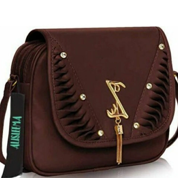 ALISLEEMA Cross Body Brown Sling Bag for Women ,Leather ,2 Compartment ,1 Zip Pocket ,Adjustable Strap ,Zip Closure