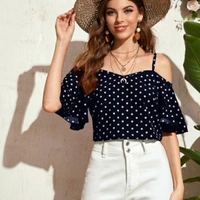Istyle Can Women Polka Dot Butterfly sleeves Cold Shoulder Top