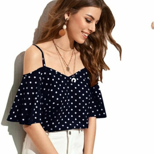 Istyle Can Women's Polka Dot Butterfly Sleeve Cold Shoulder Top Fabric: Crepe Pattern: Printed Sizes: S XL L M Country of Origin: India