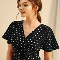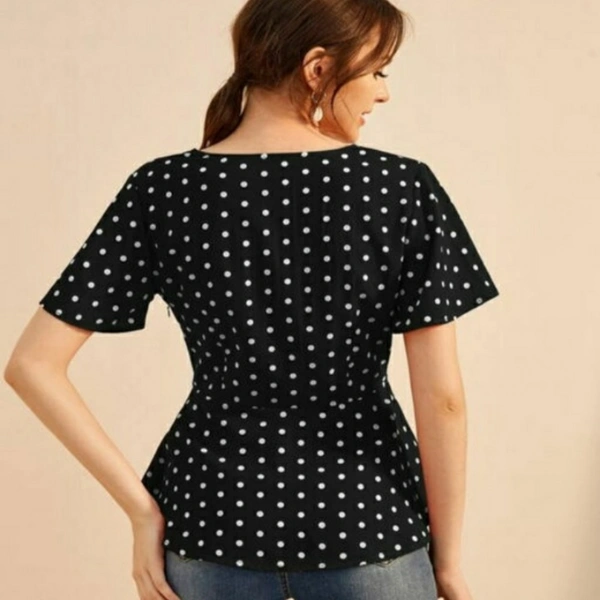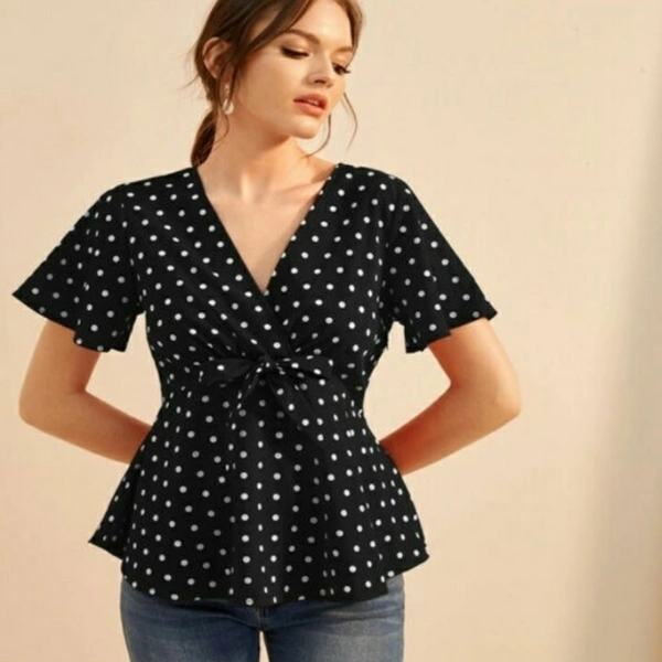 Istyle Can Women Polka Dot Front Tie Top