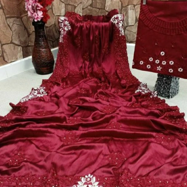 Kashvi Attractive Sarees Saree Fabric: Satin Silk Blouse: Separate Blouse Piece Blouse Fabric: Dupion Silk Pattern: Embroidered Blouse Pattern: Embroidered Multipack: Single Sizes: Free Size (Saree Length Size: 5.5 m, Blouse Length Size: 0.8 m) Country of Origin: India