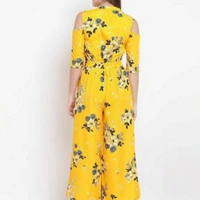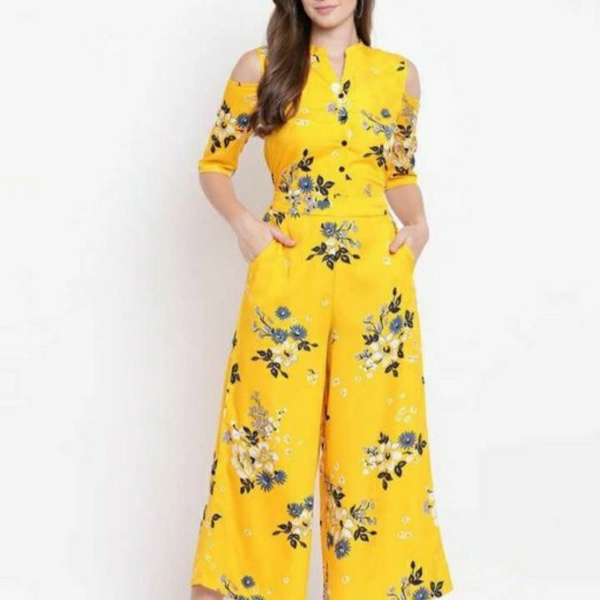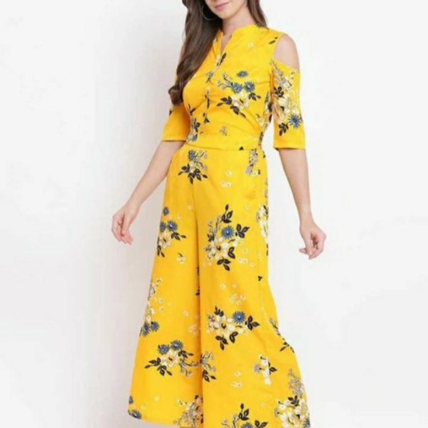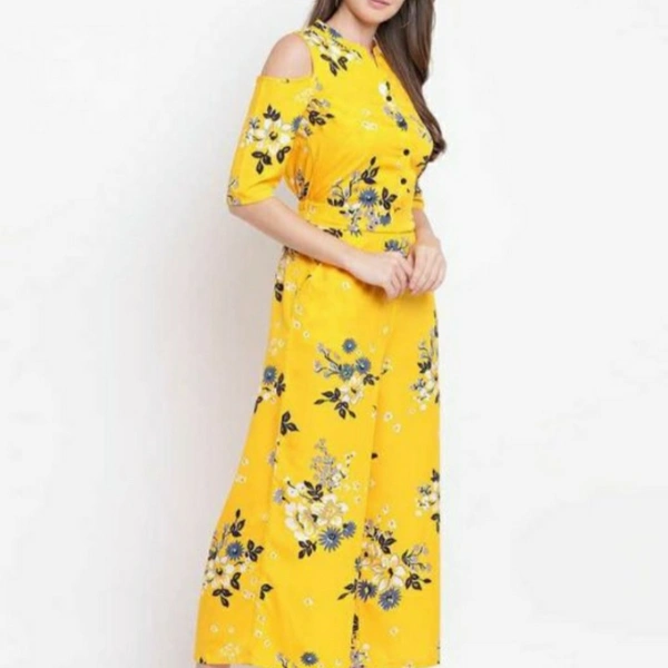RA Fashion crepe jumpsuit Fabric: Crepe Sleeve Length: Three-Quarter Sleeves Pattern: Printed Multipack: 1 Sizes: S (Bust Size: 36 in, Length Size: 52 in, Waist Size: 32 in) XL (Bust Size: 42 in, Length Size: 52 in, Waist Size: 38 in) XS (Bust Size: 34 in, Length Size: 52 in, Waist Size: 30 in) L (Bust Size: 40 in, Length Size: 52 in, Waist Size: 36 in) M (Bust Size: 38 in, Length Size: 52 in, Waist Size: 34 in) XXL (Bust Size: 44 in, Length Size: 52 in, Waist Size: 40 in) XXXL (Bust Size: 46 in, Length Size: 52 in, Waist Size: 42 in) Country of Origin: India