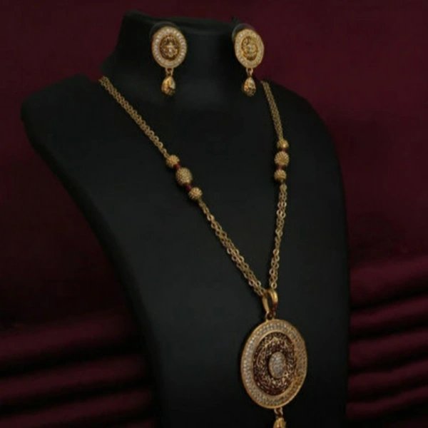Trendy Brass Women Jewellery Set Base Metal: Brass Plating: Gold Plated Stone Type: American Diamond Sizing: Adjustable Type: Pendant With Chain and Earrings Multipack: 1 Size: Free Size Country of Origin: India
