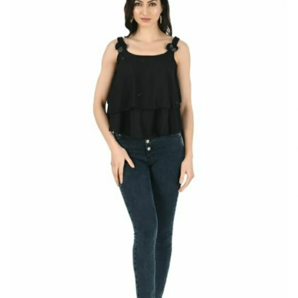 Trendy Elegant Women Tops & Tunics Fabric: Polyester Sleeve Length: Sleeveless Pattern: Solid Multipack: 1 Sizes: S (Bust Size: 36 in, Length Size: 15 in) L (Bust Size: 40 in, Length Size: 17 in) M (Bust Size: 38 in, Length Size: 16 in) Country of Origin: India