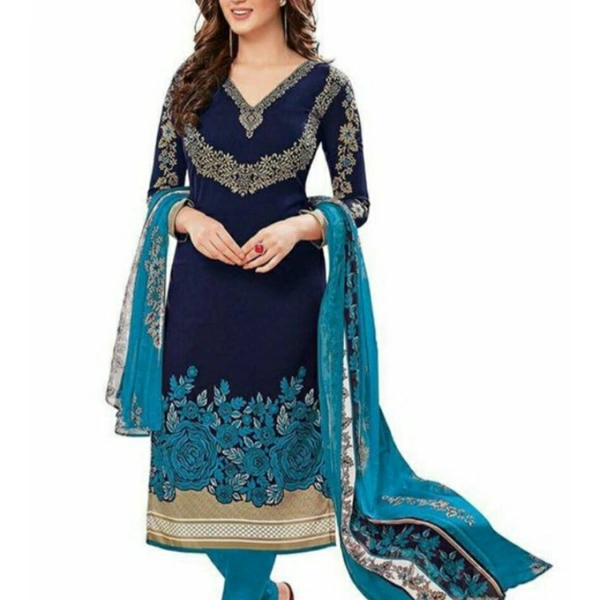 Superb Collection of Women's Fancy Unstitched Dress Material Top Fabric: Crepe + Top Length: 2 Meters Bottom Fabric: Crepe + Bottom Length: 2 Meters Dupatta Fabric: Chiffon + Dupatta Length: 2 Meters Lining Fabric: Crepe Type: Un Stitched Pattern: Printed Multipack: Single Country of Origin: India