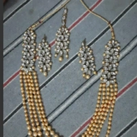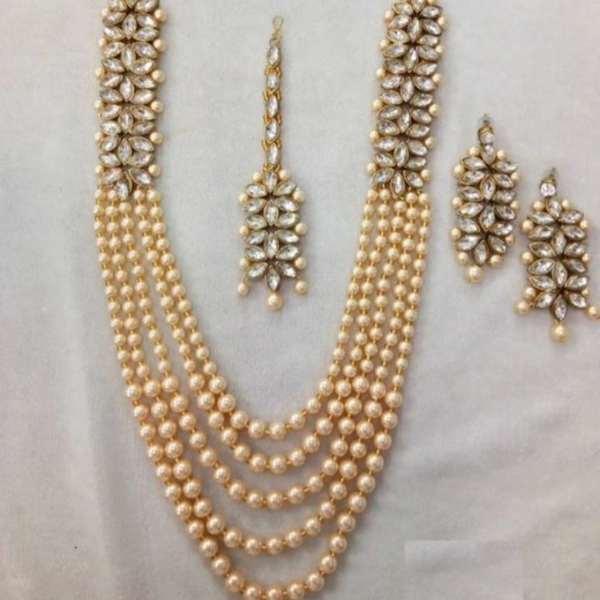 Women's Kundan And Pearl Jewellery Set Material: Alloy Size: Free Size Description: It Has 1 Piece Of Necklace 1 Pair Of Earring & 1 Piece Of Maang Tikka Work: Pearl / Stone Work Country of Origin: India