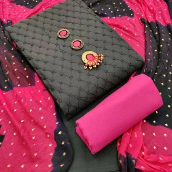Trendy Superior Salwar Suits & Dress Materials Top Fabric: Soft Cotton + Top Length: 2 Meters Bottom Fabric: Cotton + Bottom Length: 2 Meters Dupatta Fabric: Chiffon + Dupatta Length: 2 Meters Lining Fabric: No Lining Type: Un Stitched Pattern: Chikankari Multipack: Single Country of Origin: India