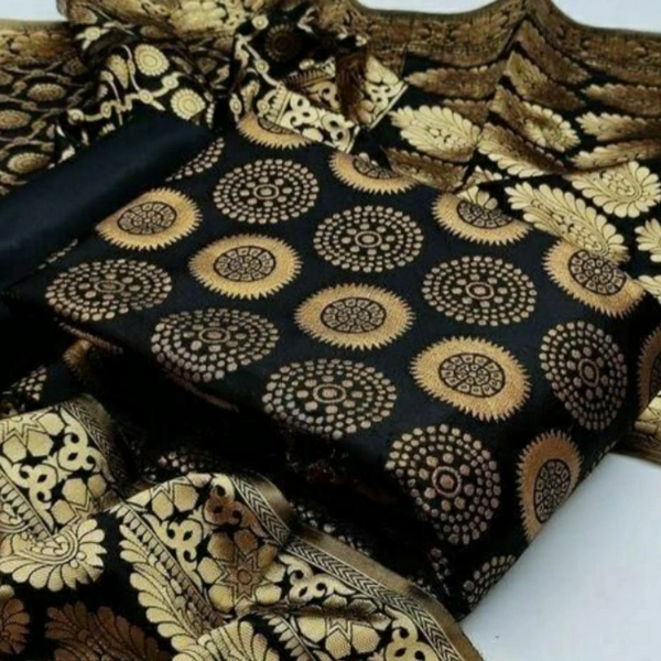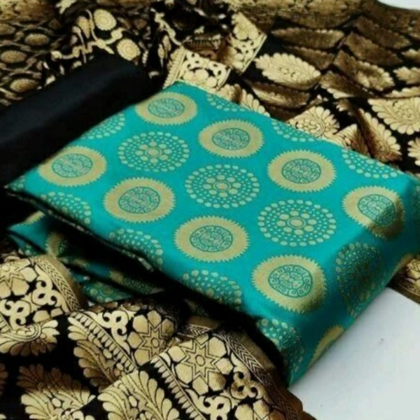 Material: Silk Machine wash Ceremony wear Dress material unstitched the design of the salwar suit is for reference purpose Dress material is made of jacquard and top: 2.35 m, bottom: 2.6 m, dupatta 2 M