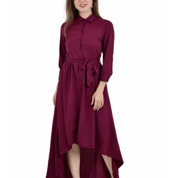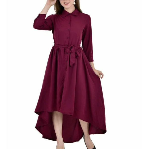 Women's High- Low Wine Dress Fabric: Crepe Sleeve Length: Three-Quarter Sleeves Pattern: Solid Multipack: 1 Sizes: S M L XL Country of Origin: India