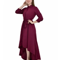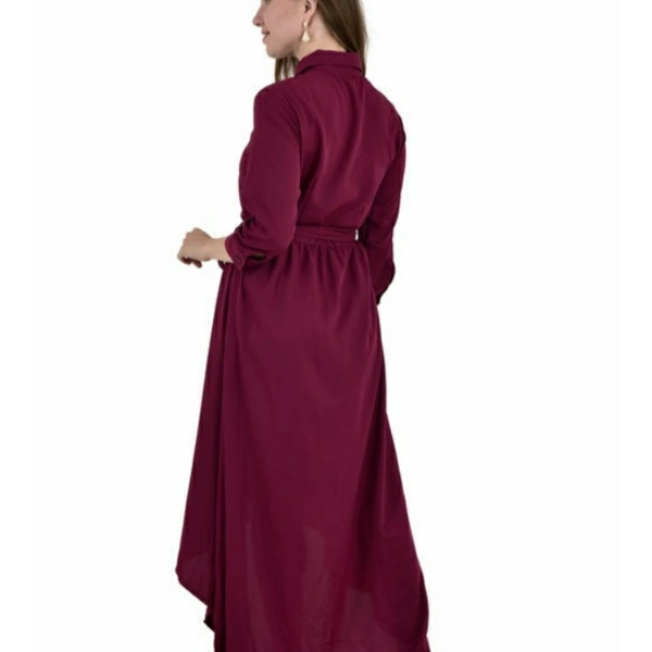 Women's High- Low Wine Dress Fabric: Crepe Sleeve Length: Three-Quarter Sleeves Pattern: Solid Multipack: 1 Sizes: S M L XL Country of Origin: India