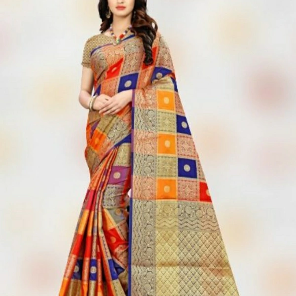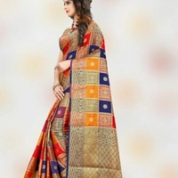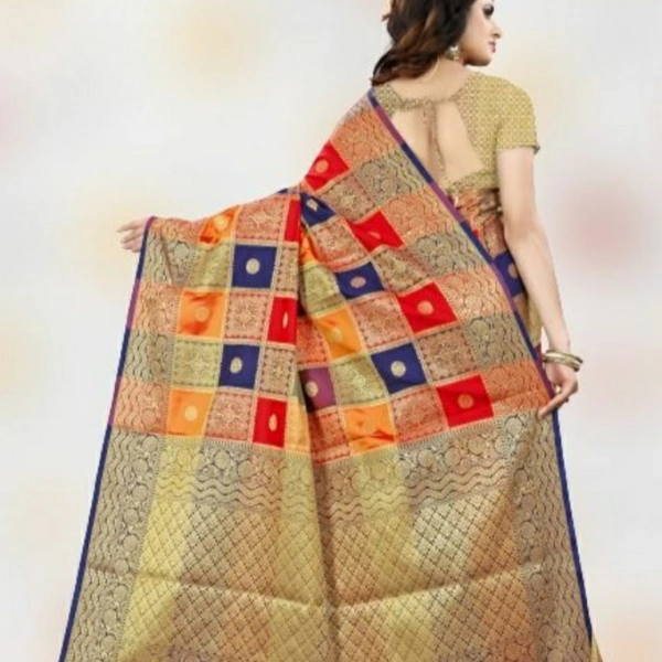 Women's Jacquard Banarasi Silk Saree with Blouse-Multicolor Saree Fabric: Banarasi Silk Blouse: Running Blouse Blouse Fabric: Banarasi Silk Pattern: Checked Blouse Pattern: Jacquard Multipack: Single Sizes: Free Size (Saree Length Size: 6.3 m) Country of Origin: India
