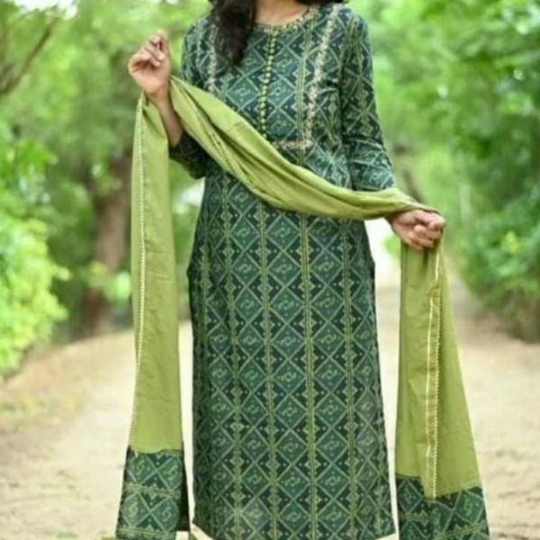 Women Cotton Straight Printed Long Kurti With Palazzos Kurta Fabric: Cotton Bottomwear Fabric: Cotton Fabric: Cotton Sleeve Length: Three-Quarter Sleeves Set Type: Kurta With Dupatta And Bottomwear Bottom Type: Palazzos Pattern: Printed Multipack: Single Sizes: XL (Duppatta Length Size: 2.25 m) L (Duppatta Length Size: 2.25 m) XXL (Duppatta Length Size: 2.25 m) M (Duppatta Length Size: 2.25 m) Country of Origin: India