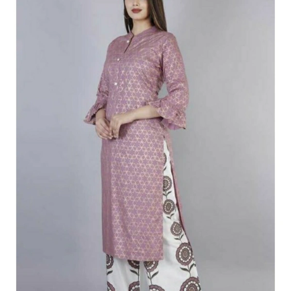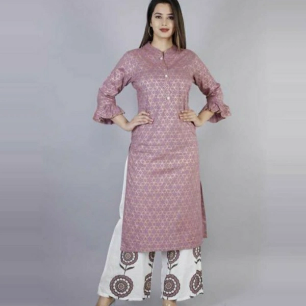 Women Rayon A-line Printed Long Kurti With Palazzos Kurta Fabric: Rayon Bottomwear Fabric: Rayon Fabric: No Dupatta Sleeve Length: Three-Quarter Sleeves Set Type: Kurta With Bottomwear Bottom Type: Palazzos Pattern: Printed Multipack: Single Sizes: XL (Bust Size: 42 in, Shoulder Size: 15.5 in, Kurta Waist Size: 42 in, Kurta Hip Size: 44 in, Kurta Length Size: 46 in, Bottom Waist Size: 32 in, Bottom Hip Size: 44 in, Bottom Length Size: 40 in) L (Bust Size: 40 in, Shoulder Size: 15 in, Kurta Waist Size: 40 in, Kurta Hip Size: 42 in, Kurta Length Size: 46 in, Bottom Waist Size: 30 in, Bottom Hip Size: 42 in, Bottom Length Size: 40 in) M (Bust Size: 38 in, Shoulder Size: 14.5 in, Kurta Waist Size: 38 in, Kurta Hip Size: 40 in, Kurta Length Size: 46 in, Bottom Waist Size: 28 in, Bottom Hip Size: 40 in, Bottom Length Size: 40 in) XXL (Bust Size: 44 in, Shoulder Size: 16 in, Kurta Waist Size: 44 in, Kurta Hip Size: 46 in, Kurta Length Size: 46 in, Bottom Waist Size: 34 in, Bottom Hip Size: 46 in, Bottom Length Si