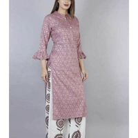 Women Rayon A-line Printed Long Kurti With Palazzos