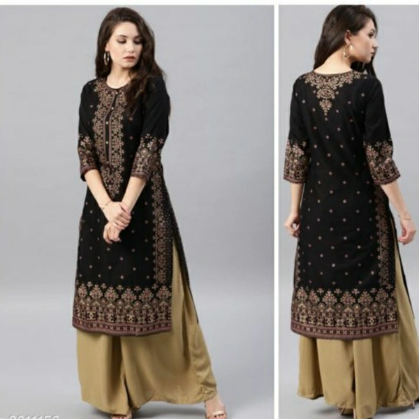 Women Rayon A-line Printed Long Kurti With Palazzos