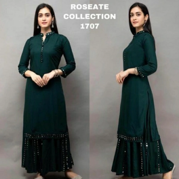 Women Rayon A-line Dyed/ Washed Long Kurti With Palazzos