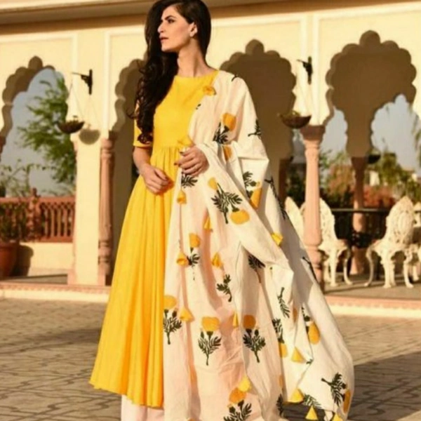 Women Rayon Flared Solid Long Kurti With Palazzos And Dupatta
