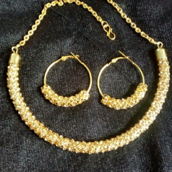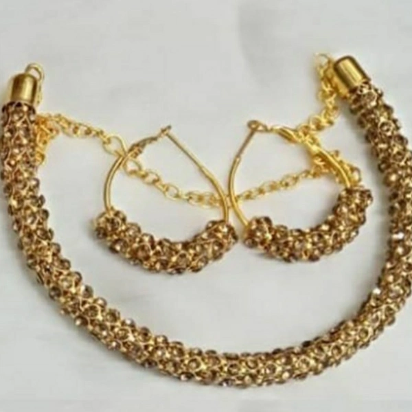 Women's Gold Plated American diamond Jewellery Set Material: Alloy Size: Free Size Description: It Has 1 Piece Of Necklace With 1 Pair of Earrings Work: Stone Work Country of Origin: India