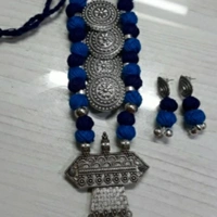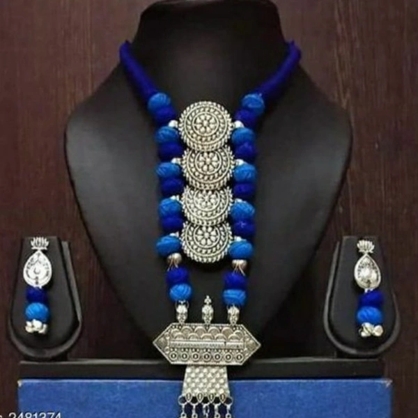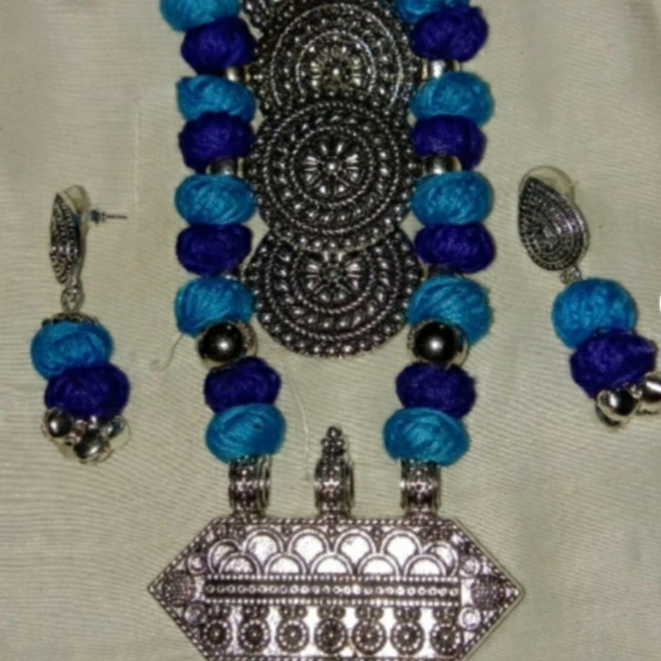 Women's Silkthread Oxidised Silver Jewellery Set Material: Oxidized Metal Size: Free Size Description: It Has 1 Piece Of Necklace & 1 Pair Of Earring Work: Beads Work Country of Origin: India