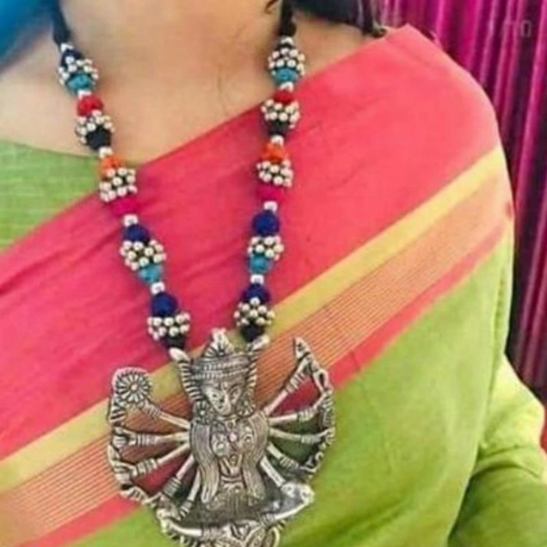 Women's Silkthread Oxidised Silver Jewellery Set Material: Oxidized Metal Size: Free Size Description: It Has 1 Piece Of Necklace Work: Beads Work Country of Origin: India