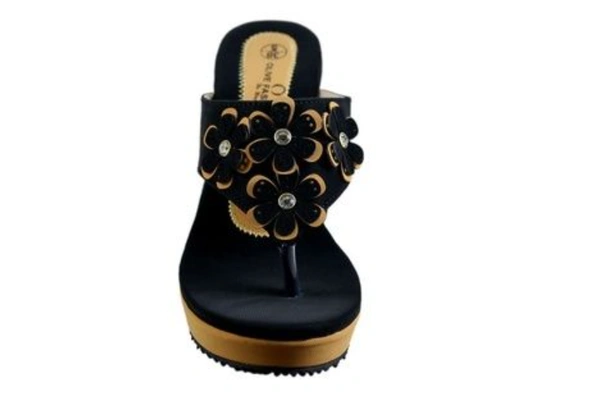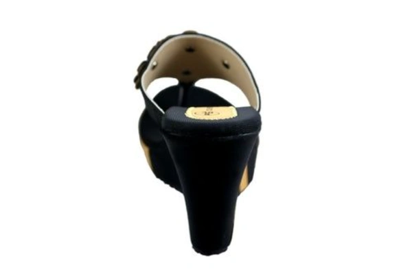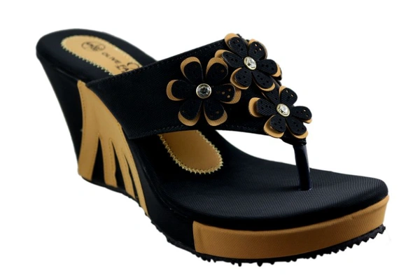 Category : Women heelsColor : BlackStyle : Wedges HeelHeel : Rubber HeelMaterial : SyntheticUpper Material : RexineSole : RubberMade in : India
