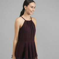 Vaararo Women Dark Purple self Weaving Stylish Top Fabric: Georgette Sleeve Length: Sleeveless Multipack: 1 Sizes: S XL L M Country of Origin: India