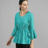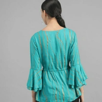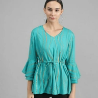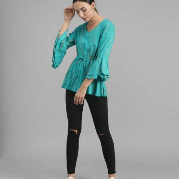 Vaararo Women Sky Blue Bell Sleeve Stylish Top Fabric: Rayon Sleeve Length: Three-Quarter Sleeves Multipack: 1 Sizes: S XL L M Country of Origin: India