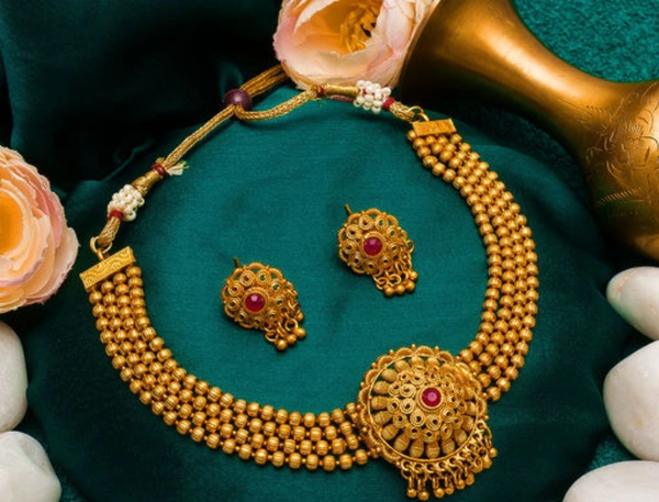 Matte Gold Plated Maharastrian choker set for women