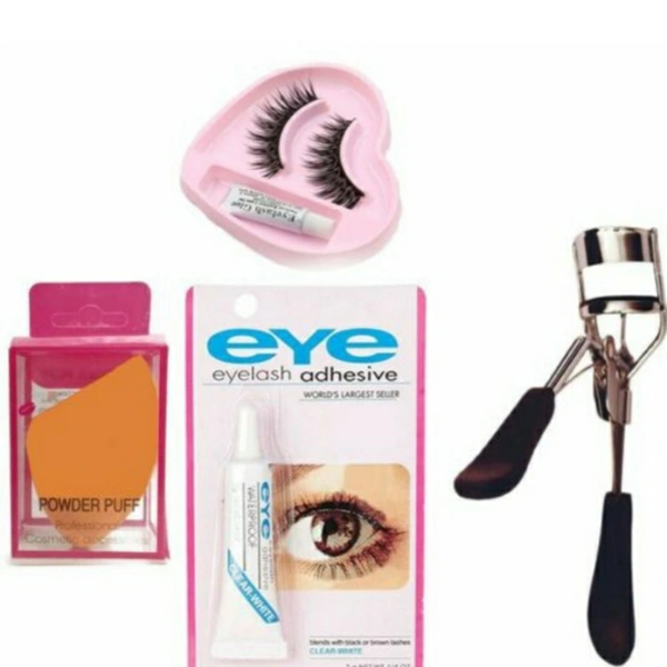 VOOC FASHION makeup Powder Sponge Puff (Collur May Very) &a Pair Of A Natural False Eyelashes And Glue And Eyelashe Curler